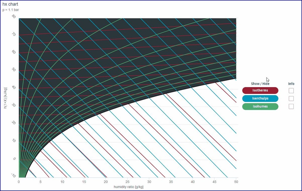 Hx diagram, známý také jako Mollierův diagram, je grafický nástroj neocenitelný pro inženýry a techniky pracující s klimatizačními a chladicími systémy. Tento diagram vizuálně znázorňuje vztah mezi enthalpií (h) a měrnou vlhkostí (x) vzduchu, což umožňuje přesnou analýzu a návrh systémů úpravy vzduchu. Hx diagram je klíčový pro pochopení a optimalizaci procesů, jako je chlazení, ohřev, vlhčení a odvlhčování vzduchu v různých aplikacích.